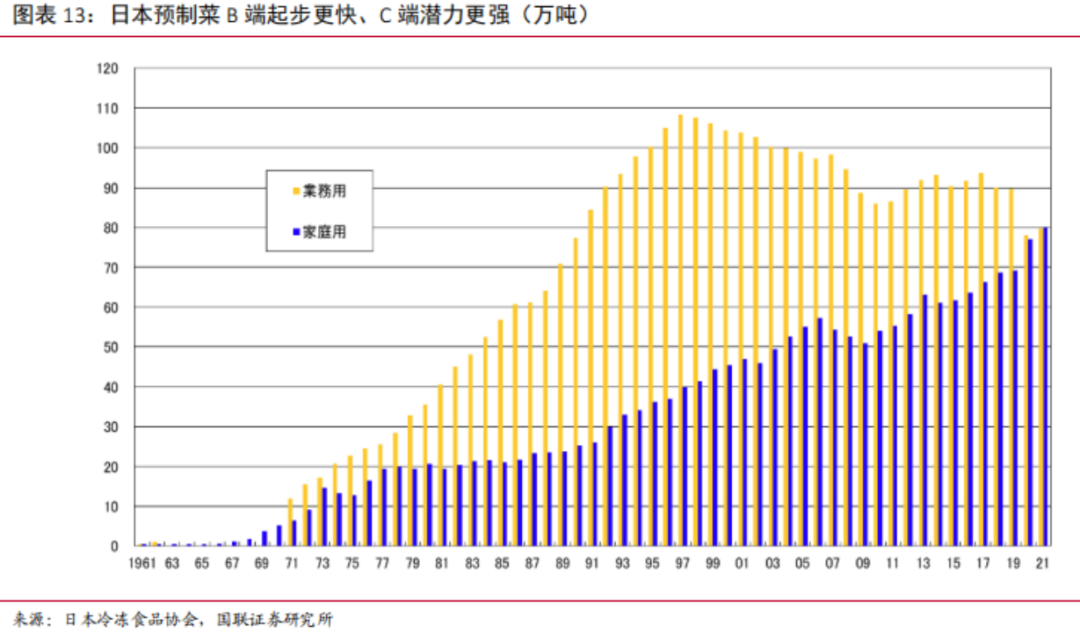 從1958年至1968年期間,日本消耗的預(yù)制菜從0.13萬噸增加到2.54萬噸,年復(fù)合增長率達(dá)到45%。