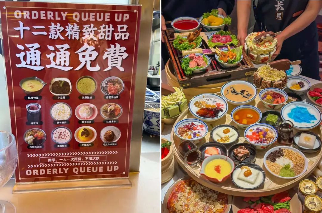 這陣子,火鍋店里的甜品,又卷起新高度了。比正宗甜品店里的更好看、更適合拍照打卡,也更豐富、花樣更精致,甚至更便宜,連錢都不用花!