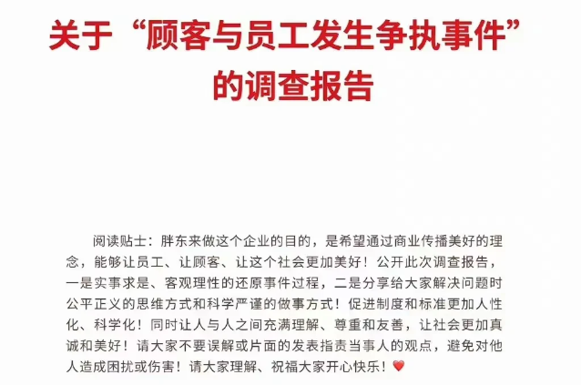 原來近日河南許昌,一顧客在胖東來內(nèi)與員工發(fā)生爭執(zhí),隨后胖東來公開一份8頁的“顧客與員工發(fā)生爭執(zhí)事件的調(diào)查報告”。