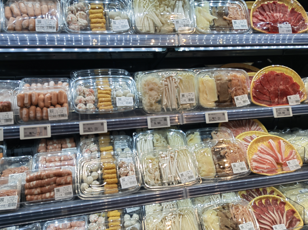 胖東來火鍋食材區(qū),火鍋餐見攝