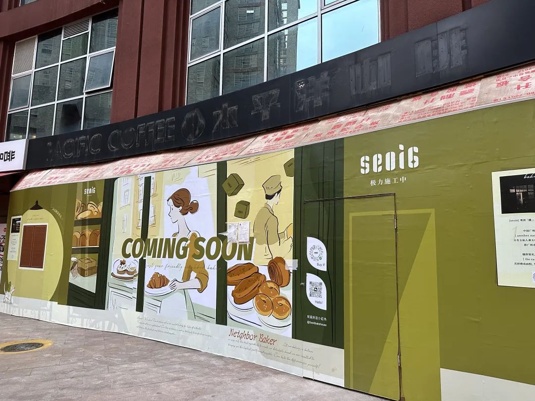 而原南天廣場(chǎng)店的商鋪已經(jīng)有了“新主人”——一家名為“seoi6”的烘焙店建起了圍擋。