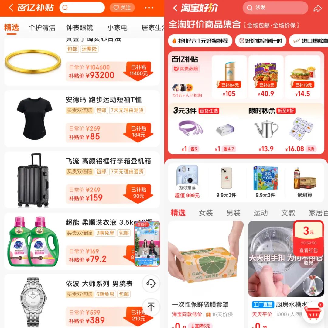 另外一邊,眼見平臺流量減少、DAU下滑,京東、淘寶天貓今年重提低價。京東前腳推出百億補(bǔ)貼,淘寶天貓后腳在618前夕上線淘寶好價頻道,推出首個淘寶好價節(jié)。兩大渠道公開表示擁抱中小商家,毫不避諱地與拼多多圍繞低價展開競爭。