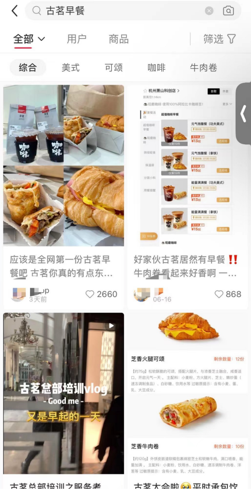6月,小紅書上出現(xiàn)了一些帖子,在曬古茗的早餐產(chǎn)品。