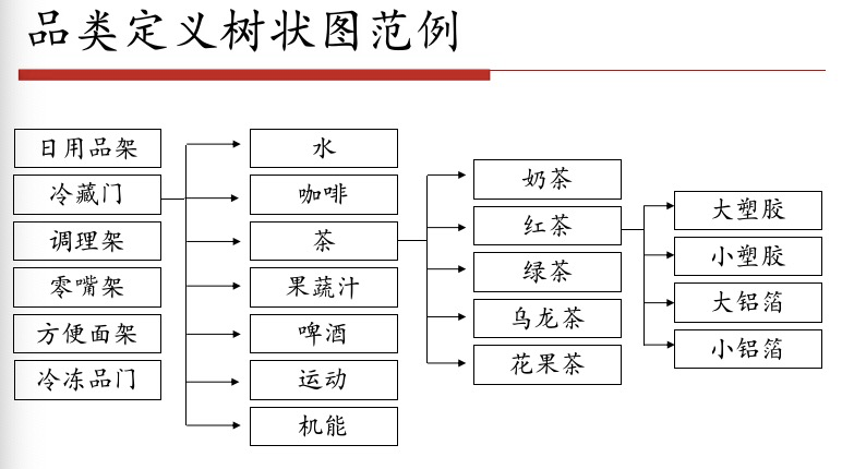 一般來說,品類就是“一組”或“一群”相近的商品或服務。在消費者心中,這組商品或服務是相互關聯(lián)或是可以相互替代來滿足消費者的需求。市場上目前對“品類”這個概念的定義主要來自于產(chǎn)品制造商及各個零售業(yè)態(tài)渠道。