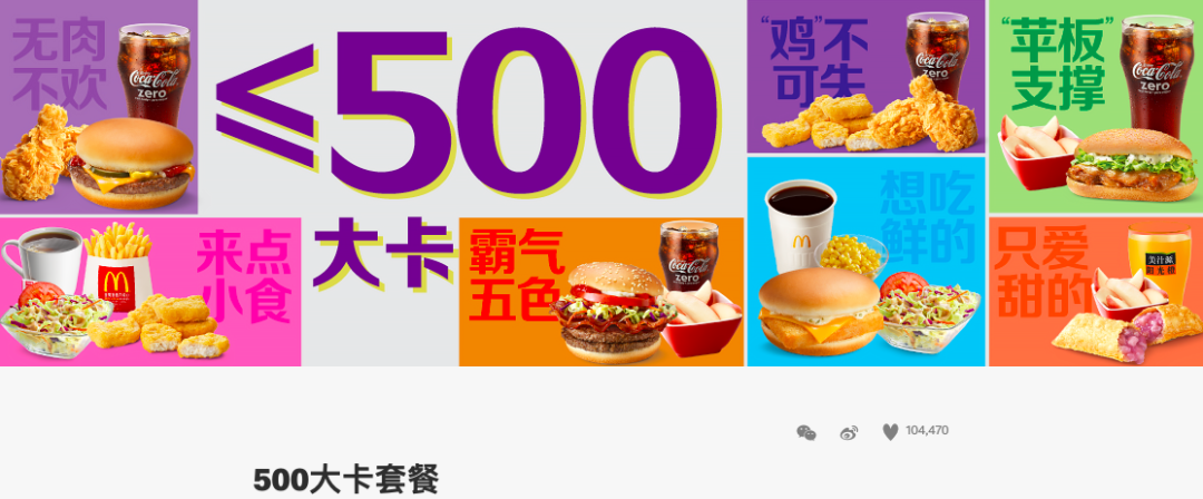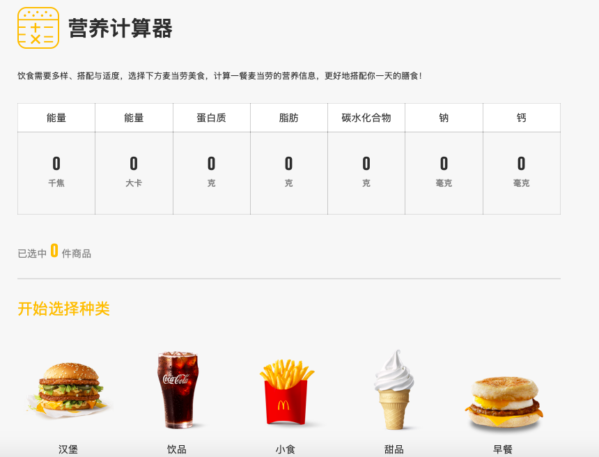 2018年起,麥當(dāng)勞中國(guó)在官網(wǎng)發(fā)布“營(yíng)養(yǎng)計(jì)算器”,每份菜品的能量、蛋白質(zhì)、脂肪、碳水化合物、鈉和鈣都一目了然。2019年,它開(kāi)始推廣500大卡套餐,套餐名也迎合“看了就是瘦了”哲學(xué),非常之吉利。