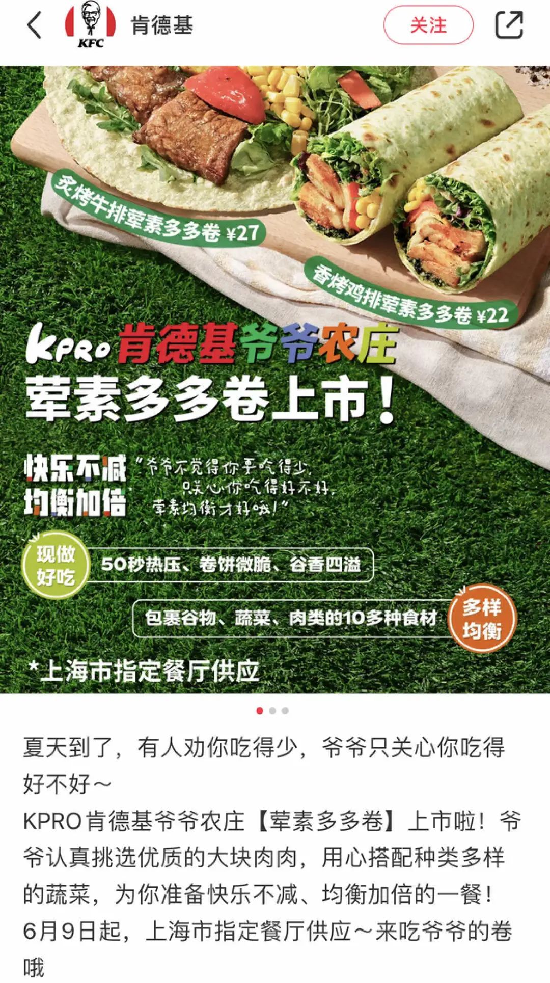 2017年,在進(jìn)入中國(guó)市場(chǎng)賣了三十年漢堡炸雞后,肯德基開(kāi)始賣輕食,推出輕食子品牌KPRO。
