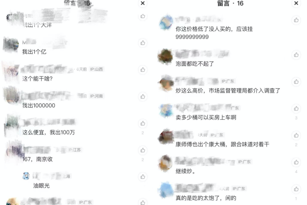 閑魚(yú)上一家售價(jià)99999的泡面下方評(píng)論區(qū),有消費(fèi)者表示“炒這么高價(jià),市場(chǎng)監(jiān)督管理局都介入調(diào)查了!