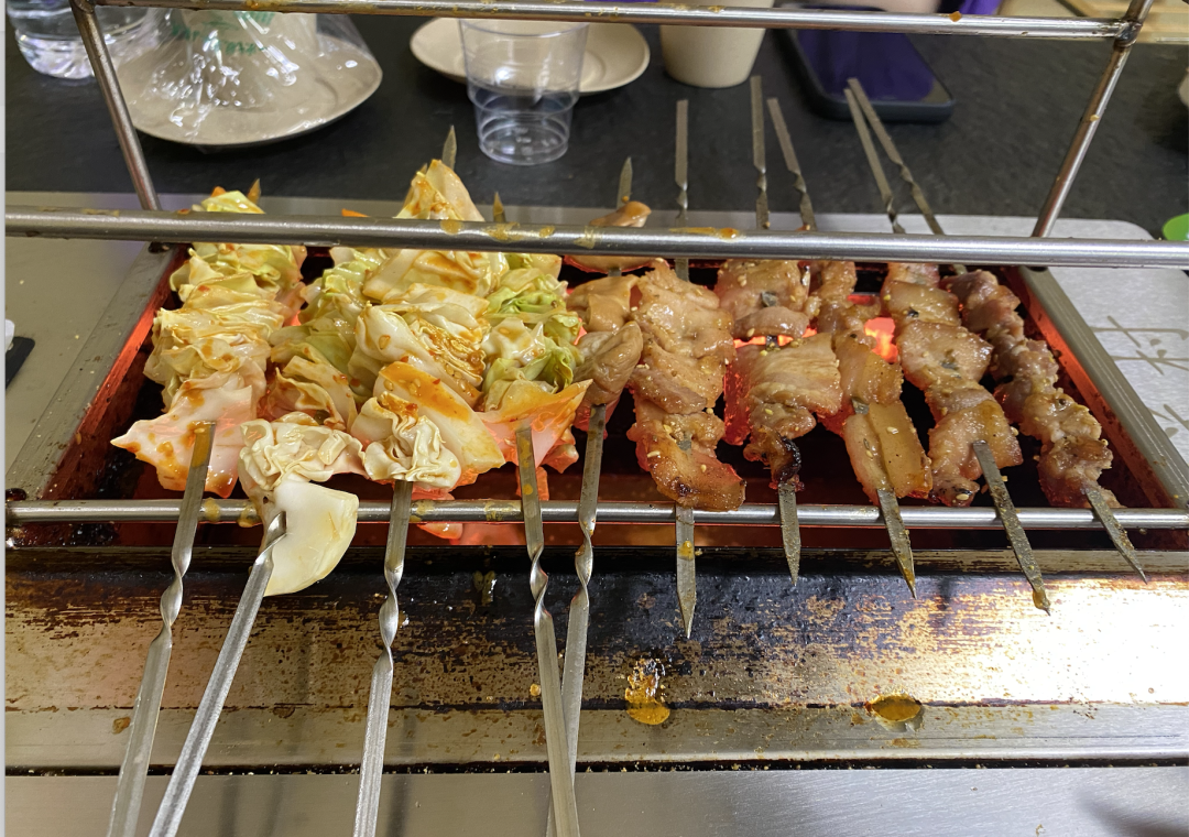 5月份,青島頗具地域特色的野餛飩&燒烤攤逐漸多起來,趁著淄博燒烤的熱度,加上了小爐子,換了個門頭,加了小餅小蔥,賣起了淄博燒烤。