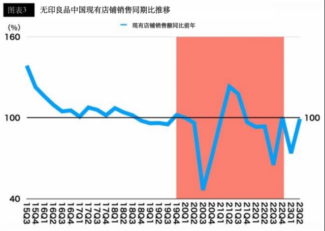 第二個(gè)原因是名創(chuàng)優(yōu)品的登場(chǎng)。無印良品在這種“只有打折時(shí)才購買”的情況還沒有解決的時(shí)候,強(qiáng)大的競(jìng)爭(zhēng)對(duì)手就成長(zhǎng)起來了,因此雪上加霜,銷售業(yè)績(jī)十分不佳。