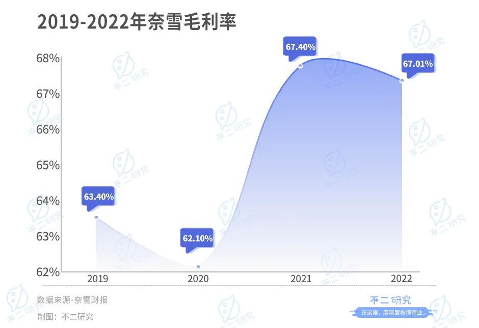奈雪的毛利也處于下滑趨勢,2019-2022年毛利率分別為63.40%、62.10%、67.40%和67.01%。而據(jù)國信證券測算,同樣定價30+的喜茶毛利率能達到65%-70%?梢娔窝┑挠芰Σ⒉痪邆涓偁幜。