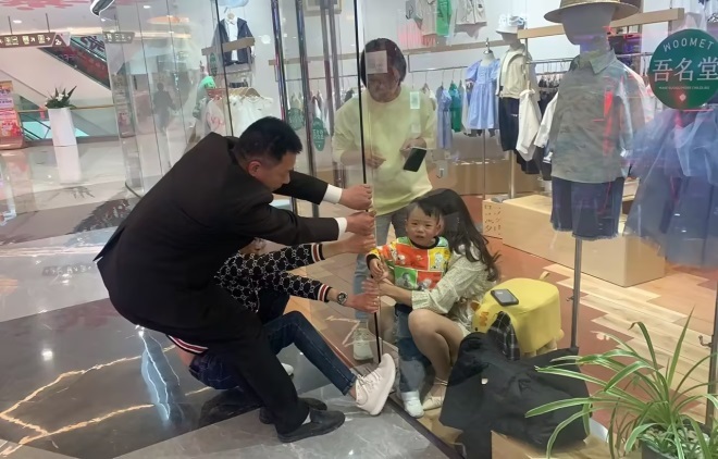 今年4月,東百城北區(qū)二樓吾名堂店內(nèi),一位小朋友在玩耍時手臂被玻璃門夾住。正在巡場的張英平第一時間趕往現(xiàn)場,并且聯(lián)系商場工程部展開應(yīng)急處置。