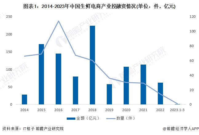 截至2023年3月28日,國內(nèi)生鮮電商產(chǎn)業(yè)僅發(fā)生1例投融資事件,且投融資金額只有 0.3 億元。