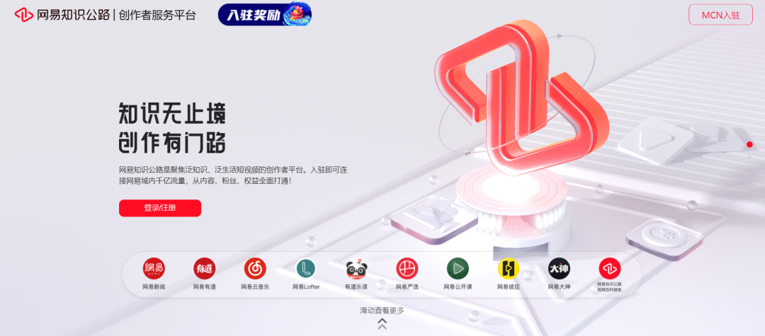 網(wǎng)易知識(shí)公路是網(wǎng)易上線(xiàn)的一個(gè)聚焦泛知識(shí)、泛生活短視頻的創(chuàng)作者平臺(tái),于2021年1月21日正式上線(xiàn)。主要作為視頻中臺(tái),全面打通網(wǎng)易新聞、網(wǎng)易云音樂(lè)、網(wǎng)易嚴(yán)選、網(wǎng)易LOFTER、網(wǎng)易有道五大場(chǎng)景,后續(xù)又打通了網(wǎng)易大神、網(wǎng)易公開(kāi)課兩大場(chǎng)景,實(shí)現(xiàn)視頻內(nèi)容的“一次入庫(kù),全網(wǎng)分發(fā)!