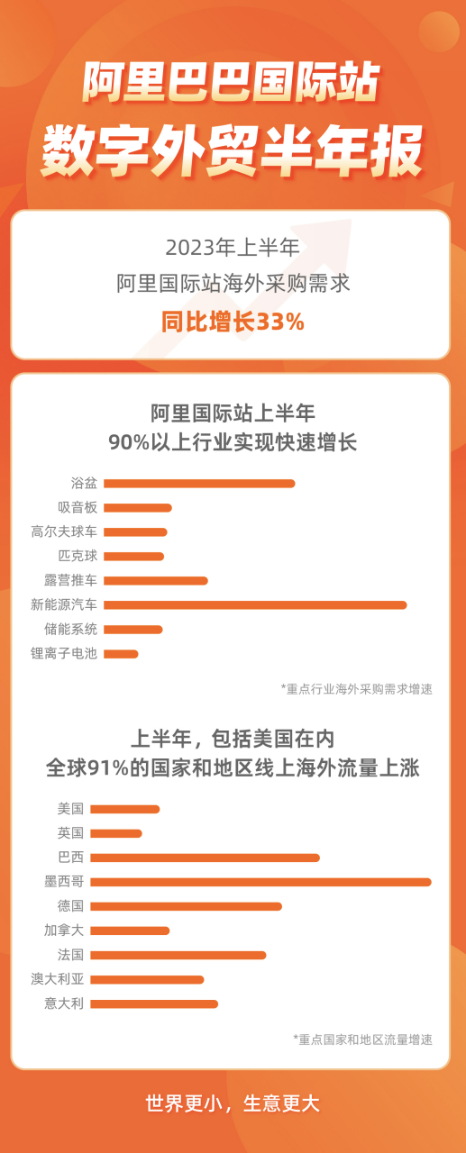 聯(lián)商快訊:2023年上半年,阿里巴巴國際站上,海外線上需求同比增長33%。