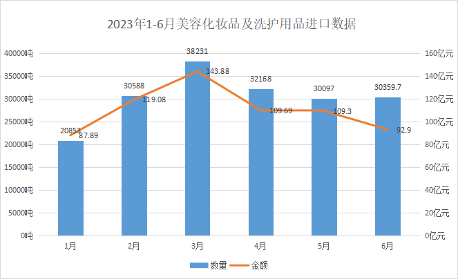 據(jù)海關(guān)進(jìn)口數(shù)據(jù)顯示,今年上半年累計(jì)進(jìn)口金額為661.9億元,同比下滑8.7%;累計(jì)進(jìn)口數(shù)量為182213.6噸,同比下滑10.7%。而今年6月,美容化妝品及洗護(hù)用品類進(jìn)口30359.7噸,同比下滑9%,進(jìn)口金額為92.9億元,同比下滑21.79%。截至目前,海關(guān)進(jìn)口金額已連續(xù)3個(gè)月下滑。