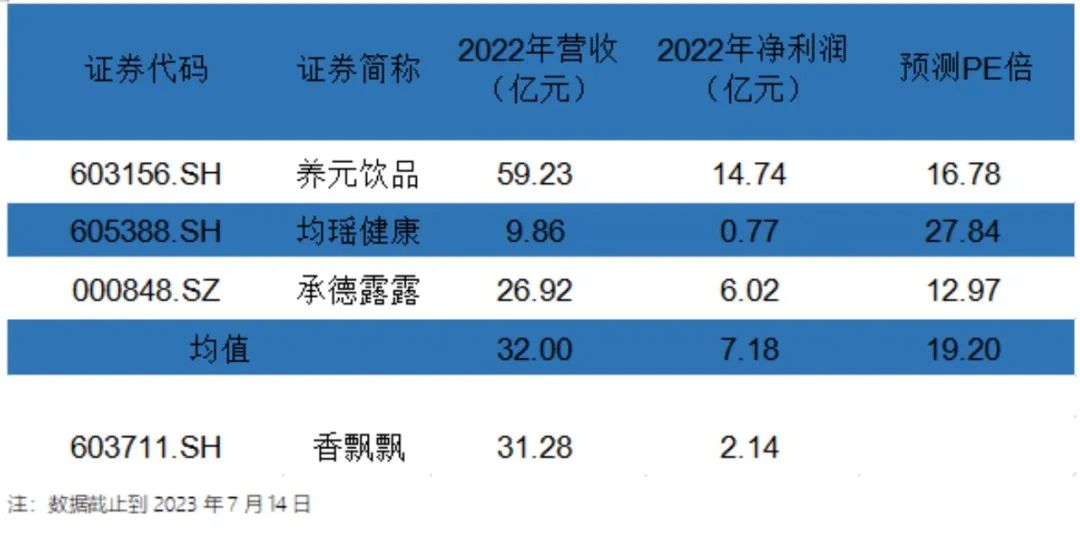 圖:香飄飄沖泡業(yè)務估值對比 數(shù)據(jù)來源:wind、36氪整理