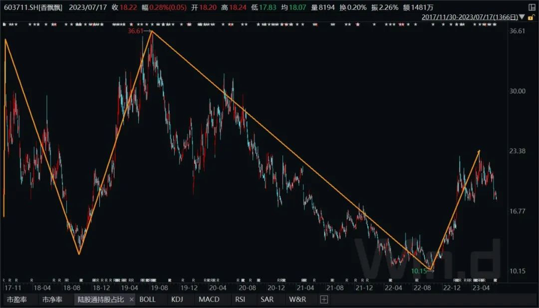 圖:香飄飄股價走勢圖 數(shù)據(jù)來源:wind、36氪整理