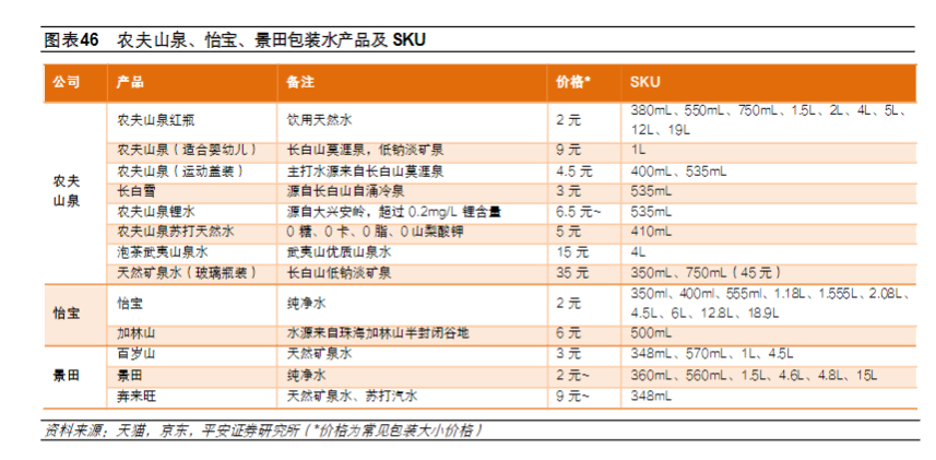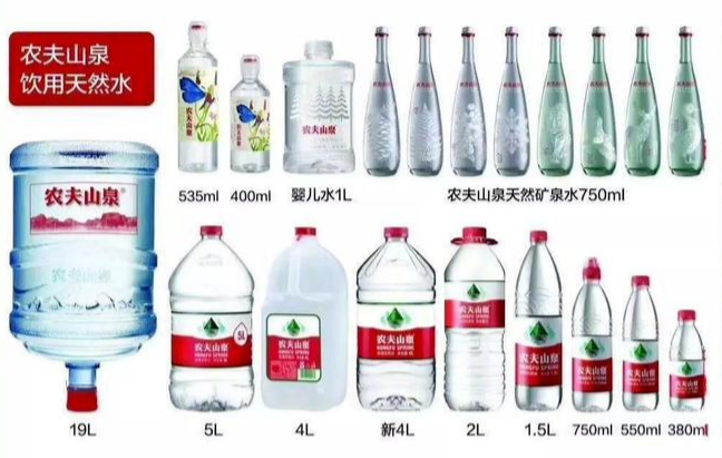 以農(nóng)夫山泉為例,除經(jīng)典紅瓶款之外,還開發(fā)了適合嬰幼兒的天然水、主打雪水的長白雪,以及武夷山泉水等八個系列,容量規(guī)格多達(dá)十幾種。