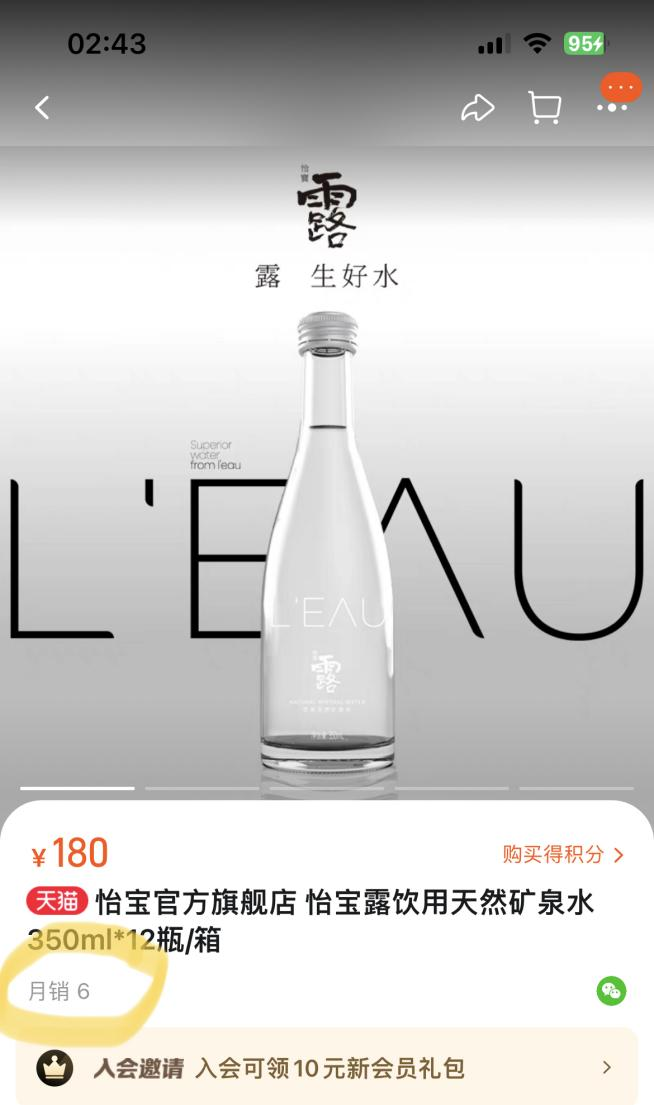 此外,怡寶露每瓶高達(dá)15元的定價也讓不少消費(fèi)者直呼“買不起”,在怡寶旗艦店中,12瓶裝售價為180元的怡寶露月銷僅6件。