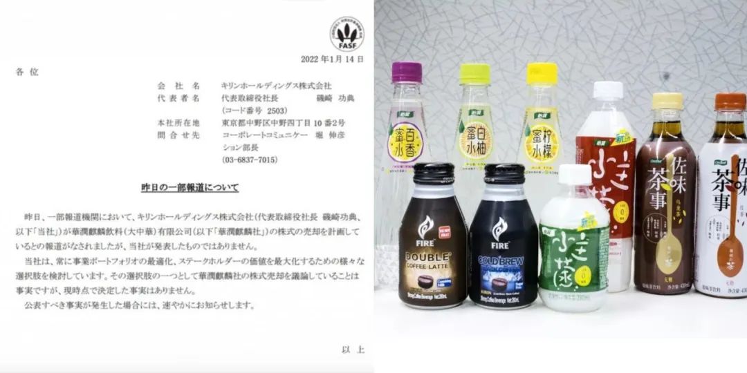 2022年1月,日本麒麟發(fā)布出售華潤麒麟股份的相關(guān)公告,最終以1150億日元的價格將合資飲料業(yè)務(wù)賣出,正式結(jié)束了與華潤怡寶的合作。