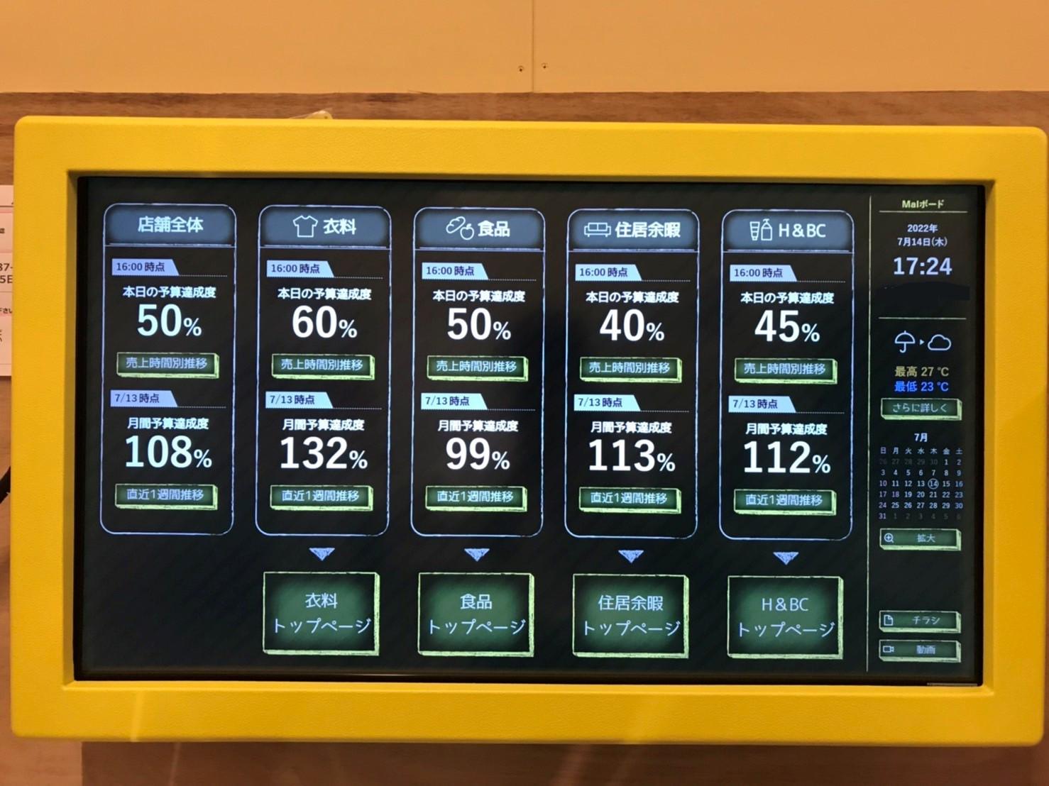 “Mal Board”電子面板可實時顯示銷售數(shù)據(jù)、訪客和商品數(shù)量以及天氣濕度等。圖源:AEON