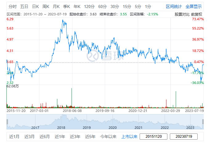 雪球數(shù)據(jù)顯示,達利食品股價自2018年1月達到最高點6.29港元/股后,開始呈現(xiàn)逐漸下跌的走勢,近5年來長期處于每股5港元以下,今年6月1日更是跌到了2.43港元/股,相比最高價的6.29港元/股早已腰斬。
