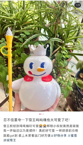 但很多聯(lián)名IP由于自帶文化基因,能夠為茶飲品牌帶新的人群與新的故事。因此以聯(lián)名來提升品牌力,不斷擴大自己的粉絲圈層也是品牌們需要關(guān)注的。相比其他品牌,蜜雪冰城在聯(lián)名中也會更注重自己品牌IP的打造,比如此次與《蛋仔派對》的聯(lián)名,推出的周邊中就有雪王噸噸桶、雪王吸管、雪王公仔等。