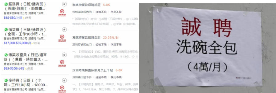 首先,餐飲品牌在香港市場(chǎng)的客單價(jià)普遍高于內(nèi)地,遇見(jiàn)小面將有機(jī)會(huì)收獲更高的營(yíng)業(yè)額,但當(dāng)?shù)貏趧?dòng)力相對(duì)緊缺,企業(yè)所面臨的用人成本也更高(如下圖所示)。