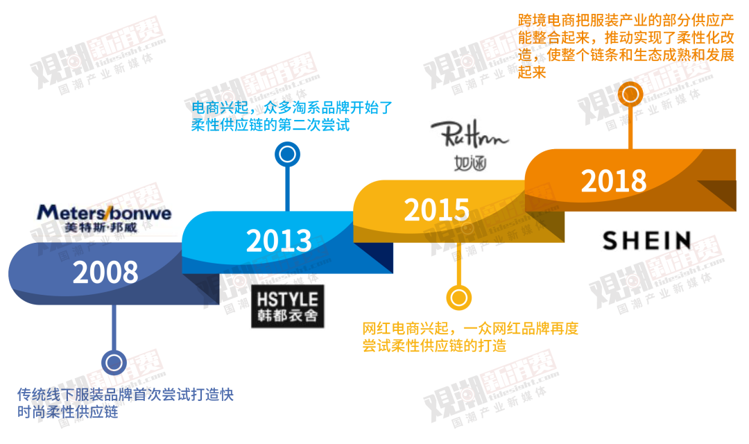 第三次嘗試是在2015年左右,網(wǎng)紅電商興起,款式需求更多,訂單深度需要更淺,對庫存積壓風(fēng)險管控要求更高,因此一眾網(wǎng)紅品牌嘗試柔性供應(yīng)鏈的打造,但也未有顯著成效。