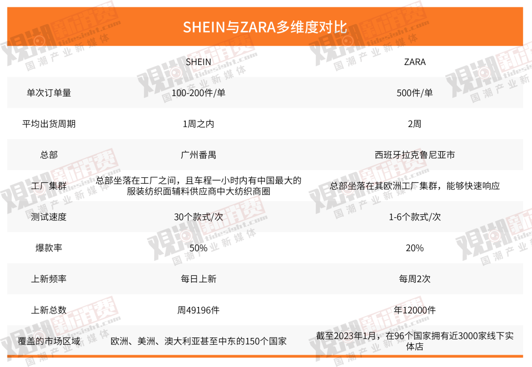 同時,由于SHEIN主營線上渠道,因此產(chǎn)品市場測試的速度為ZARA的5倍左右,意味著同時間段SHEIN可以測試更多服裝款式,爆款率也更高。此外,高效且低成本的生產(chǎn)能力是SHEIN能夠跑通小單快返生產(chǎn)模式的有力支撐。2015年,SHEIN將中國的總部從南京搬到了廣州番禺,那里聚集著一大批服裝中小加工廠,能夠快速適應(yīng)SHEIN的小單快返生產(chǎn)模式。