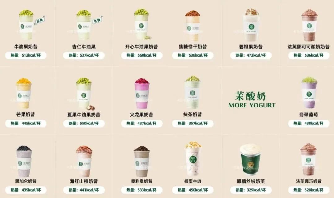 以牛油果酸奶奶昔這一“網(wǎng)紅單品”為例:古茗的“牛油果巴旦木奶昔”售價(jià)19元,茶百道的“酸奶牛油果”售價(jià)21元,7分甜的“牛油果酸奶奶昔”售價(jià)22元;而茉酸奶的牛油果酸奶系列,則要賣(mài)到29-34元。