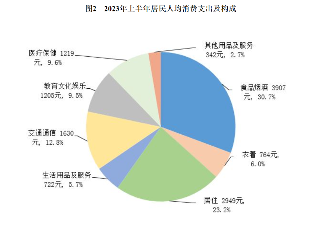 △ 2023年上半年居民人均消費(fèi)支出及構(gòu)成 圖源:國(guó)家統(tǒng)計(jì)局官網(wǎng)