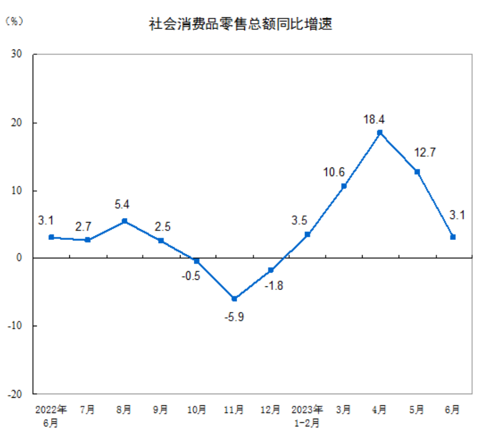△ 2023年上半年社會(huì)消費(fèi)品零售總額 圖源:國(guó)家統(tǒng)計(jì)局官網(wǎng)