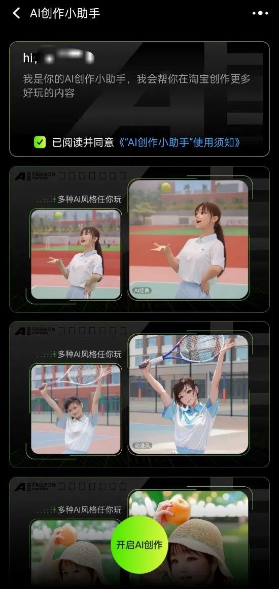 根據(jù)介紹,AI創(chuàng)作小助手旨在幫助用戶在淘寶創(chuàng)作更多好玩的內(nèi)容,除了頭像創(chuàng)作外,后續(xù)還會(huì)推出更多的玩法。