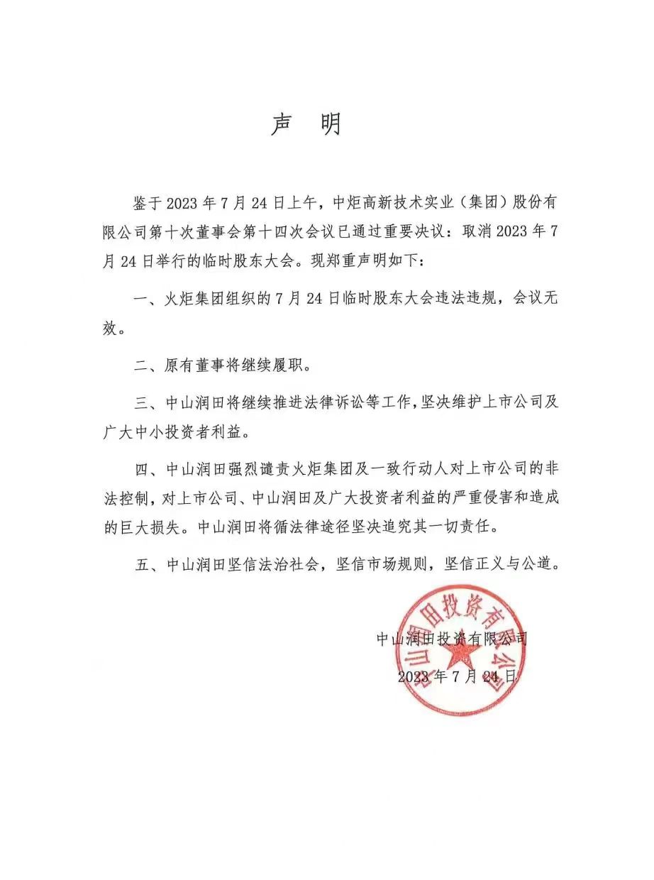 7月14日,中山潤(rùn)田再次發(fā)表聲明,一連八問,對(duì)“火炬系”上述聲明進(jìn)行駁斥。