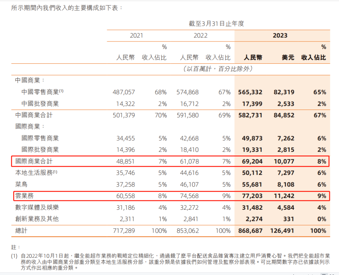 圖注:阿里國際2023財年在阿里營收占比提升1%