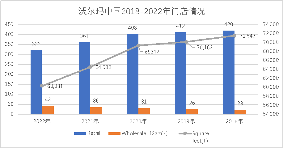 與此同時(shí),山姆會(huì)員店的數(shù)量卻從2018年的23家擴(kuò)張到2022年的43家店。