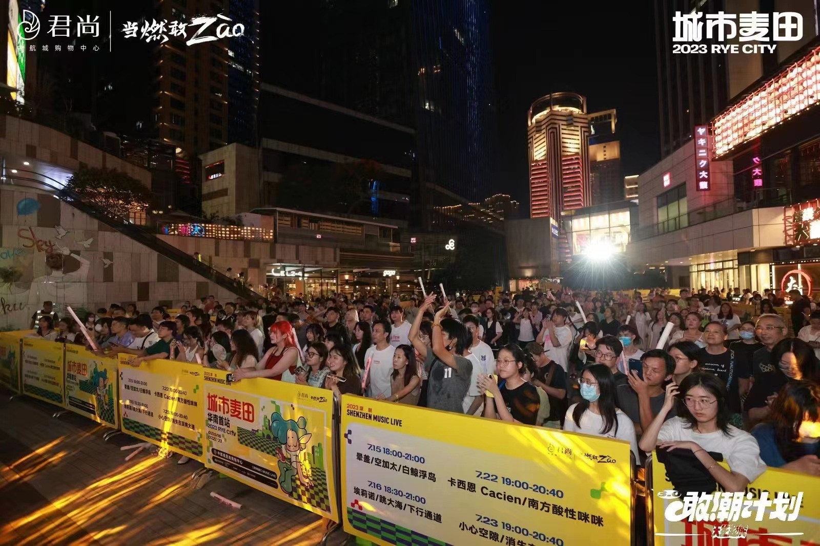 今年的“敢潮計(jì)劃3.0”將音樂節(jié)場景搬至深圳核心商圈,由太合音樂廠牌樂隊(duì)暈蓋、跳大海、埃莉諾等新銳音樂人熱情開麥,以創(chuàng)意音樂節(jié)玩法實(shí)現(xiàn)從購物中心到音樂圈的強(qiáng)勢跨界,不僅方便消費(fèi)者感受到最high的音樂節(jié)氛圍,更能享受集“吃喝玩樂購”多維一體的超級服務(wù)場景,加深了商業(yè)和年輕消費(fèi)者的情感鏈接。
