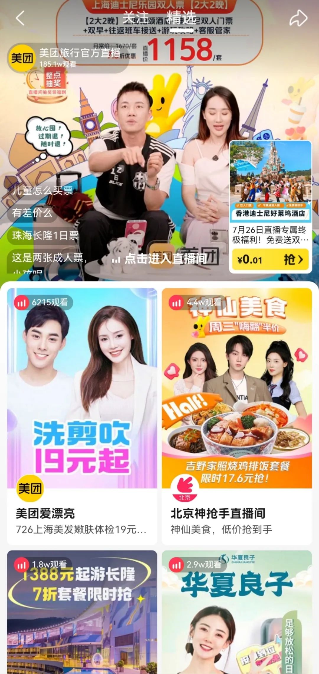 美團(tuán)直播內(nèi)容相關(guān)截圖
