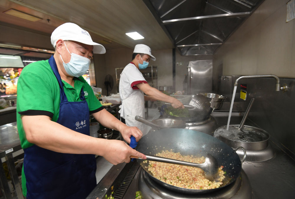 7月27日,貴陽市南明區(qū)合力超市南浦路店幸福大食堂正在陸續(xù)出菜。
