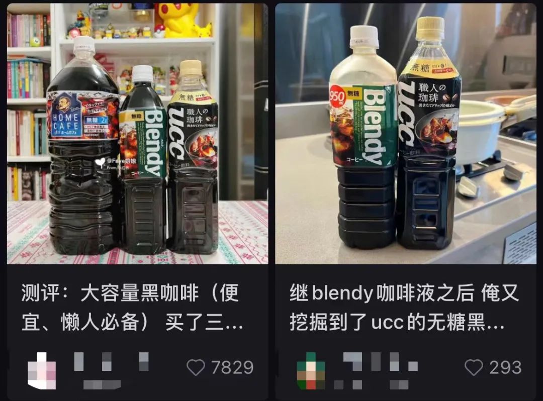 在社交平臺上,有不少網(wǎng)友們分享用大瓶裝UCC職人咖啡、blendy咖啡、三得利Boss咖啡等來搭配每日減脂飲食、上班提神的心得。大瓶裝,正在帶給價格敏感但又對咖啡有依賴的年輕人們以“咖啡自由”。
