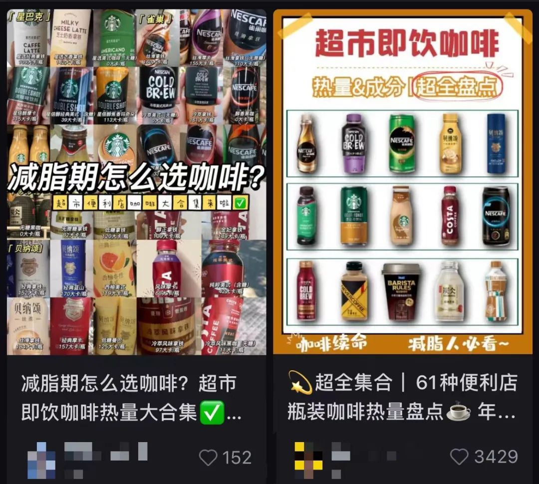 網(wǎng)友分享對即飲咖啡的熱量測評 圖片來源:小紅書截圖