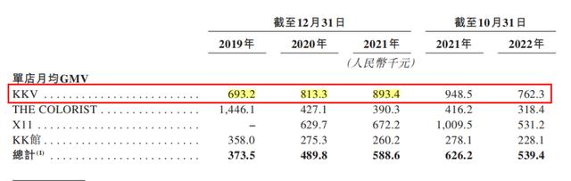 之所以盈利能力能不斷提升,必然繞不開單店模型。從門店運(yùn)營(yíng)效益來(lái)看,四大品牌均處于較為穩(wěn)定的水平。以占比近7成的KKV為例。KKV單店月均GMV從2019年的69.32萬(wàn)元逐年提升至2020年81.3萬(wàn)元及2021年的89.34萬(wàn)元,并在2021年前十月達(dá)到94.85萬(wàn)元的新高,而2022年前十月因行業(yè)整體壓力降至76.23萬(wàn)元但依然高于2019年水平。