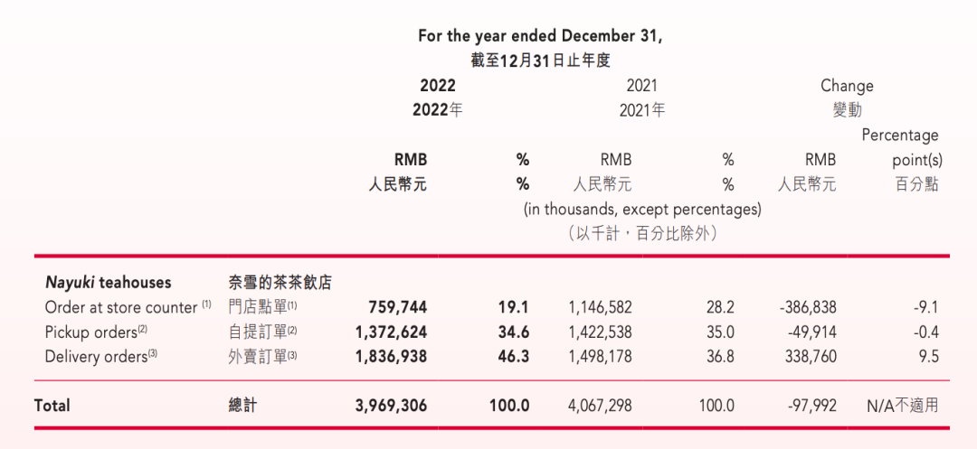 具體來看,奈雪2022年門店點單和自提訂單產(chǎn)生的營收分別為7.6億元和13.7億元,均出現(xiàn)同比下降,而來自外賣訂單的營收卻從2021年的14.98億元增長到了18.37億元。這里面可能有疫情的影響,但這種消費降級的趨勢也很有可能延續(xù)下去。