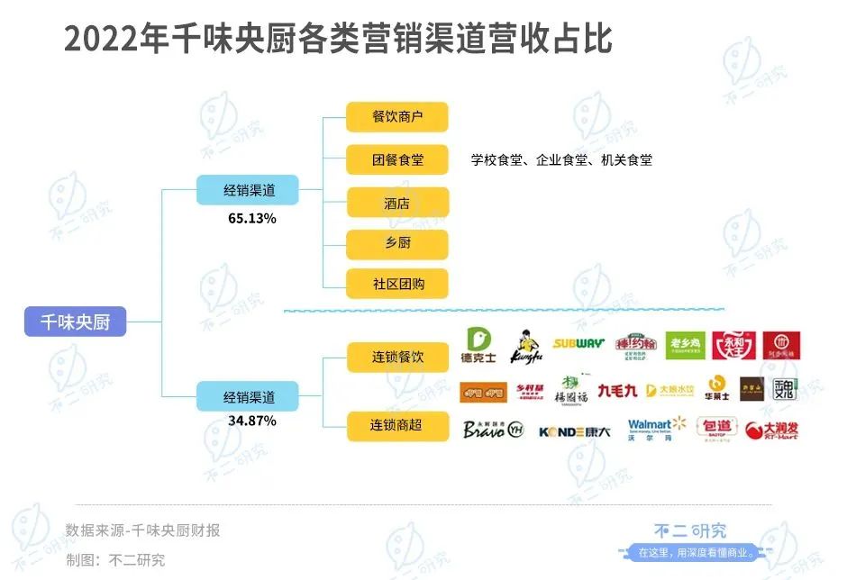 而千味央廚則專注B端市場。以直銷渠道綁定大B客戶,經(jīng)銷渠道下沉中小餐飲客戶。