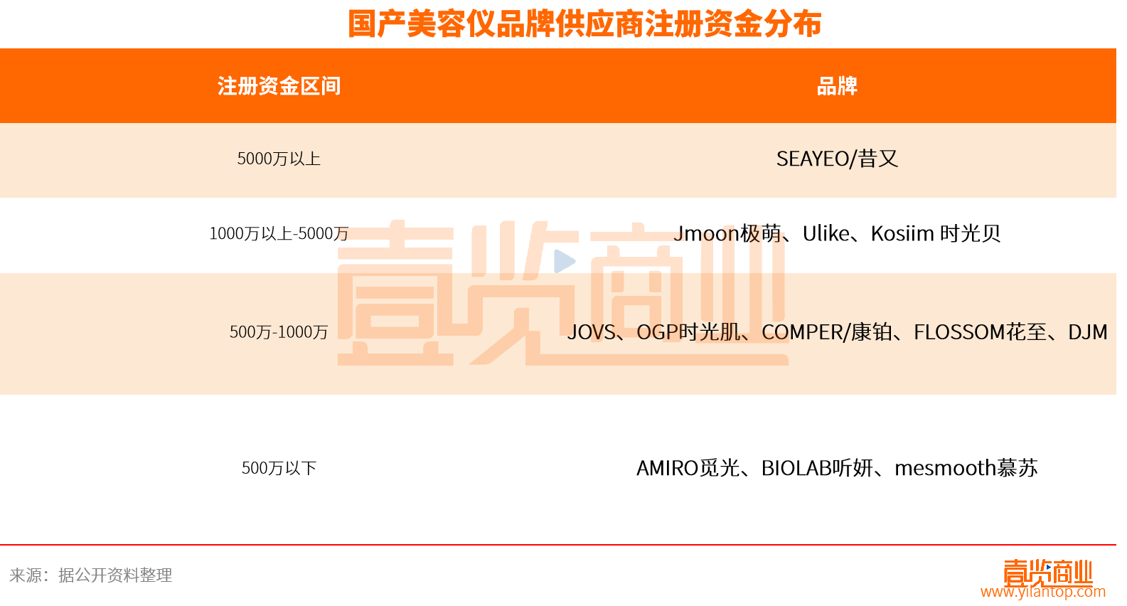 從供應(yīng)商注冊資金來看,供應(yīng)商在注冊資金500萬元以下的品牌共有三家,分別是AMIRO覓光、BIOLAB聽妍、mesmooth慕蘇占品牌總數(shù)的27.2%。