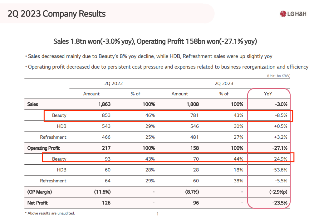 截圖自LG生活健康2023年二季度財(cái)報(bào)