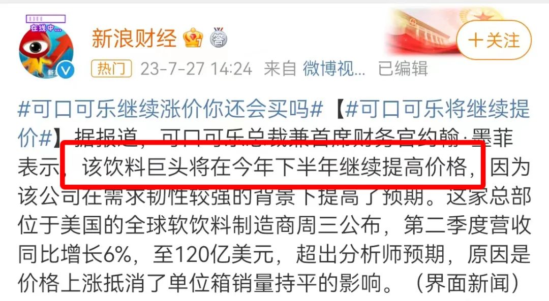 而這將是繼2021年后,三年內(nèi)可口可樂的第2次提價(jià)。