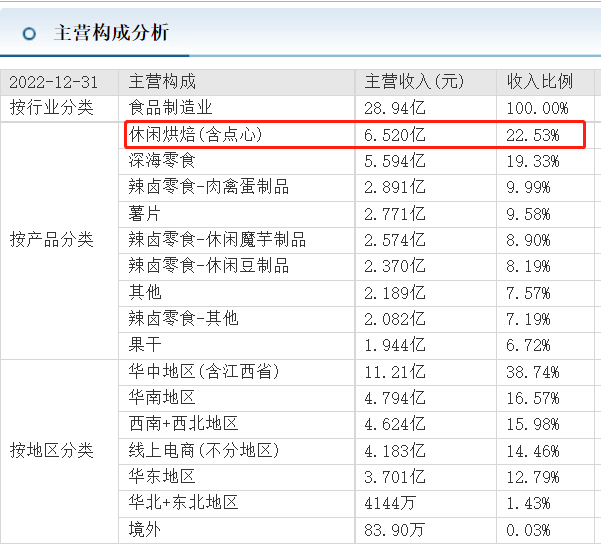最新財(cái)報(bào)顯示,目前鹽津鋪?zhàn)又饕劢褂诶丙u零食、深海零食、烘焙、薯片、蒟蒻、鵪鶉蛋以及果干七大核心品類。