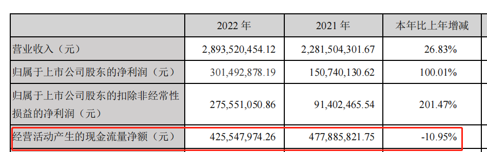 根據(jù)2022年報(bào)數(shù)據(jù),鹽津鋪?zhàn)拥拇尕洀?022年初的2.59億元激增至2022年末的4.534億元,現(xiàn)金流卻同比減少了10.95%。